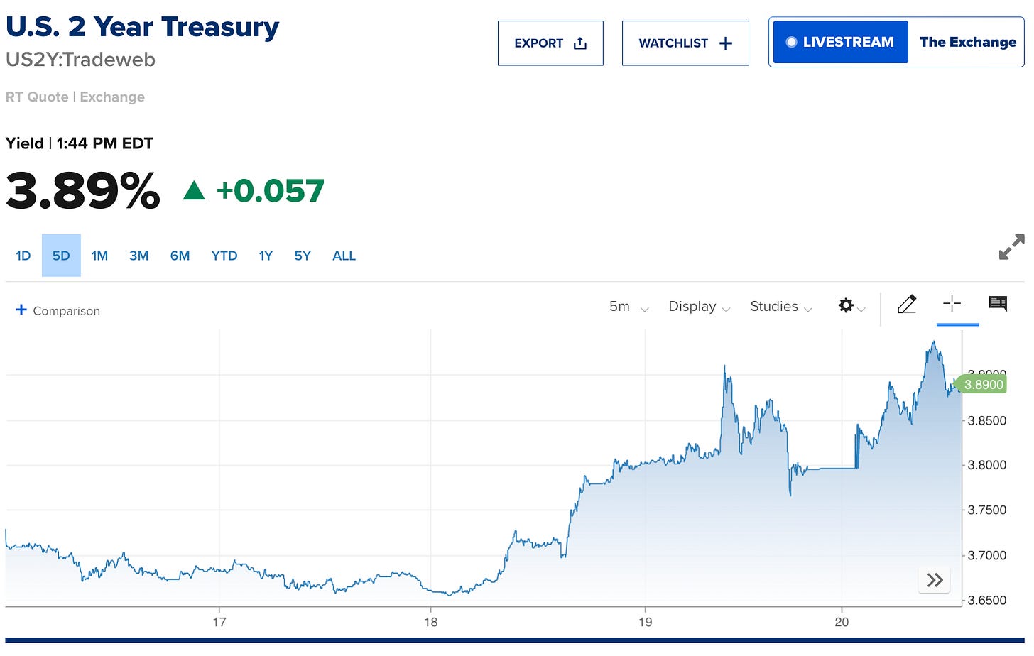 The 2-year Treasury just made a 30-basis-point move in five days.