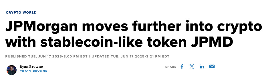 One major development that underscores this trend is JPMorgan’s recent launch of its own tokenized deposit called JPMD.