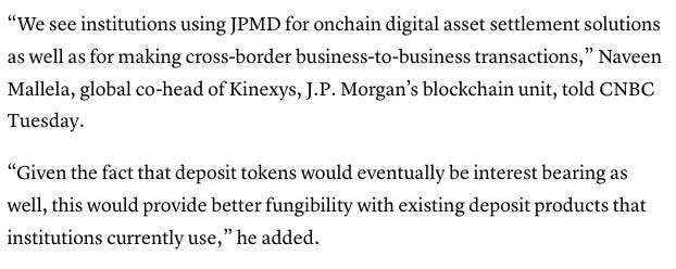 JPMorgan has already jumped in with the launch of its own tokenized deposit, JPMD.