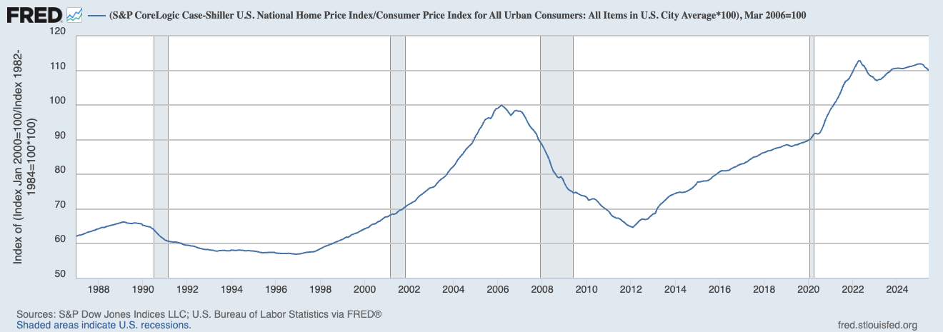 The Case-Shiller Index, adjusted for inflation, shows a softening national trend. That matters. Because real purchasing power is what determines long-term asset value.