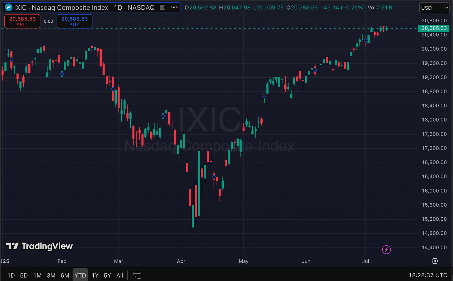 Despite the economic fireworks, the S&P 500 has shrugged. Up 7% year-to-date.