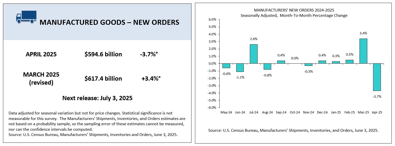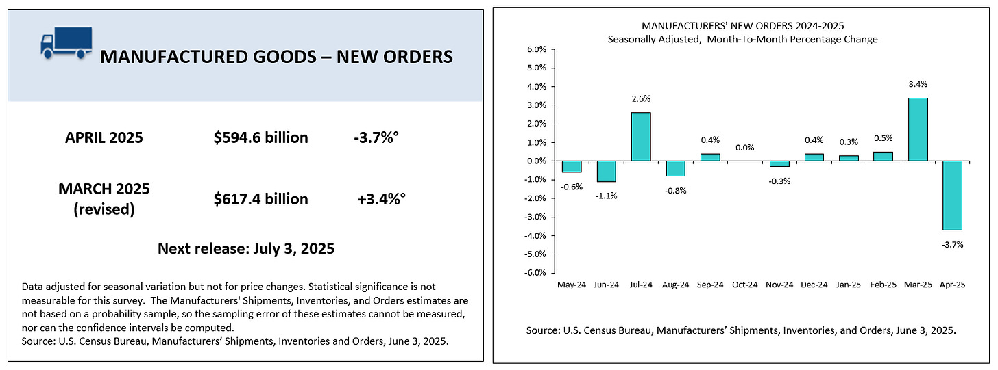 This morning, the U.S. Census Bureau released its Monthly Full Report on Manufacturers’ Shipments, Inventories, & Orders for April 2025.