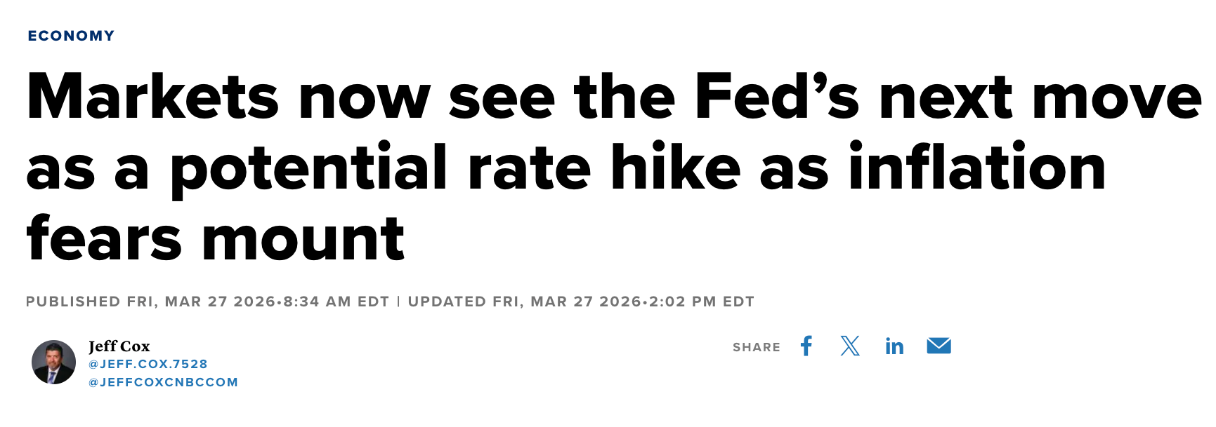 For the better part of the past month, the macro trade has been playing out in one direction: oil goes up, interest rates go up, gold goes down. The logic is simple enough. Rising crude prices push inflation expectations higher. Higher inflation expectations make the Fed less likely to cut...maybe more likely to hike. The 2-year Treasury yield, which is the most sensitive part of the curve to Fed policy expectations, dutifully marched higher every time crude ticked up. By Friday, futures markets pushed the probability of a Fed rate hike by year-end to 52%...the first time that threshold had been crossed in this cycle. So the mainstream inflation narrative had a clean, consistent, reinforcing story.