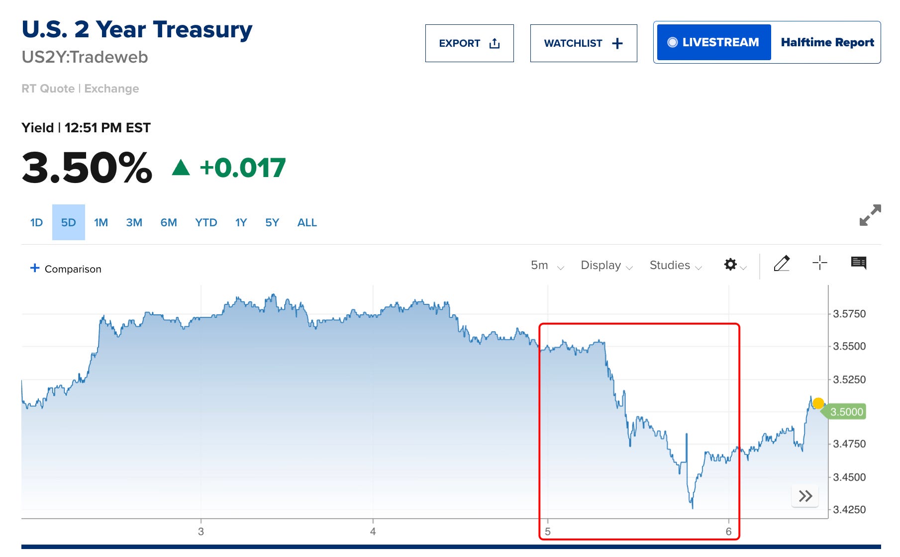 The 10-year yield dropped nearly 10 basis points in a single session.
