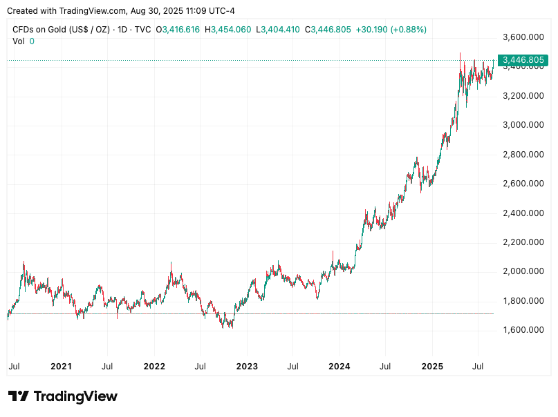 Gold just broke through its all-time high, surging more than 1.2% in a single day.