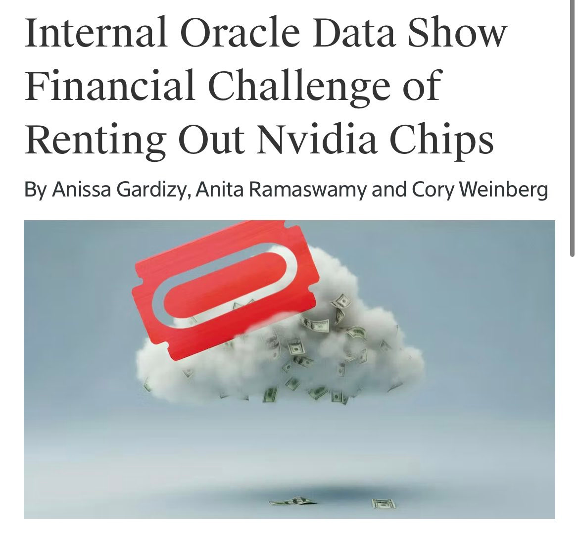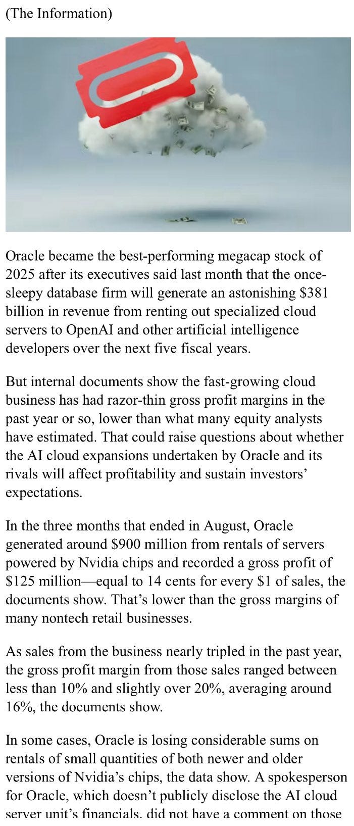 Let’s focus on the catalyst. The leaked internal Oracle document reportedly showed that their AI business…specifically renting Nvidia chips to clients like OpenAI…had only 14% gross margins.