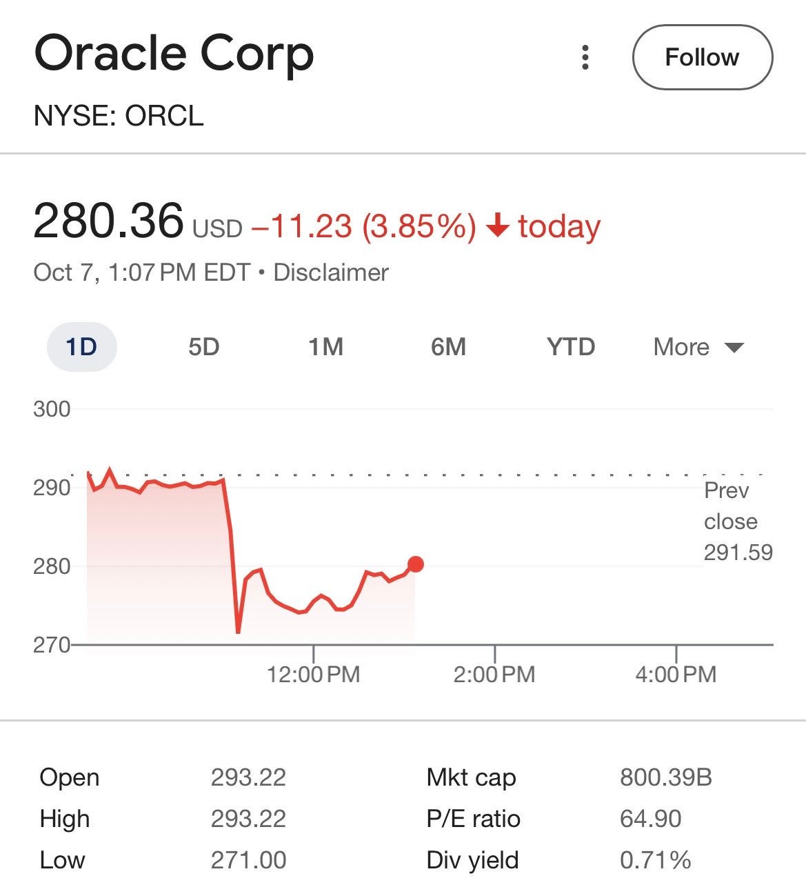 Oracle stock cratered intraday, though it recovered slightly by the close.