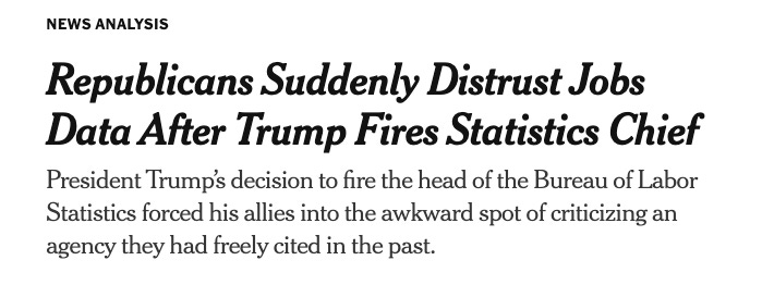 In the wake of the July jobs report, President Trump fired the BLS Commissioner.