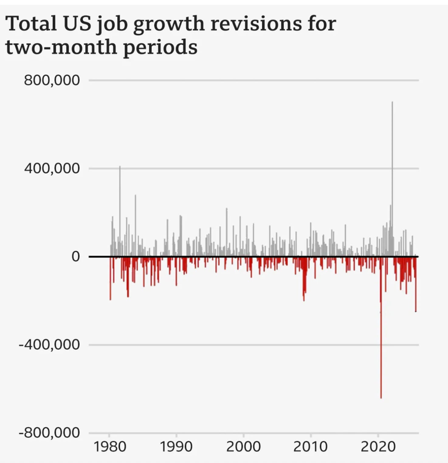 What’s more alarming? There has never been a two-month combined revision this large outside of a recession.