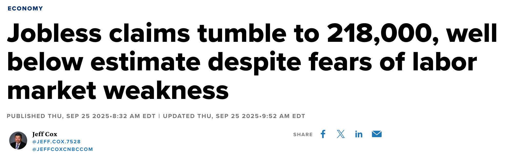 Last Thursday’s data drop landed like a Hollywood jump scare. Initial jobless claims plunged to 218,000…well below expectations.