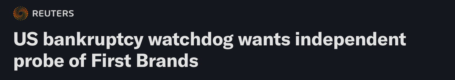First Brands, an auto-parts manufacturer, went from being worth $10 billion (they were planning a $6B refi!) to completely bankrupt.